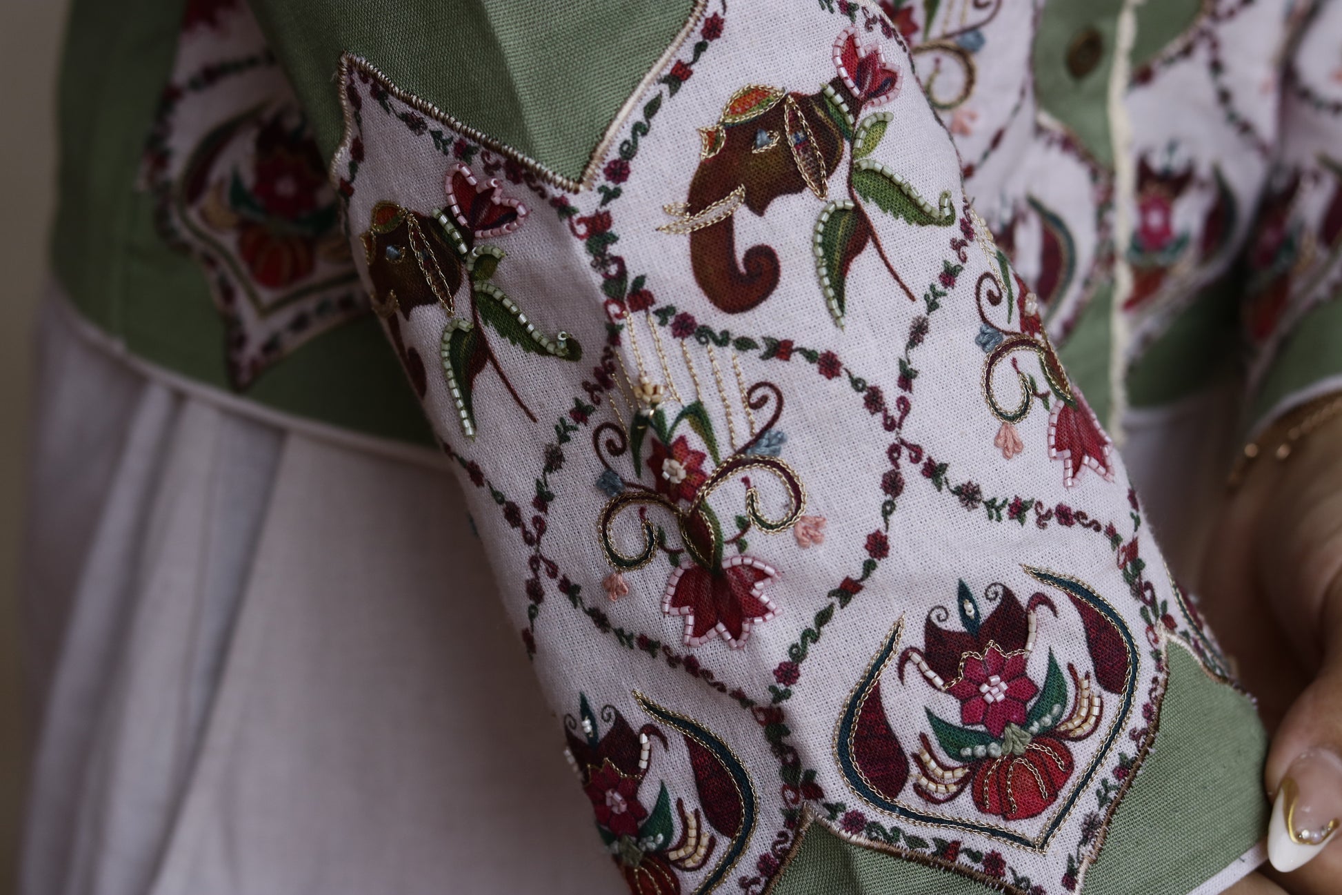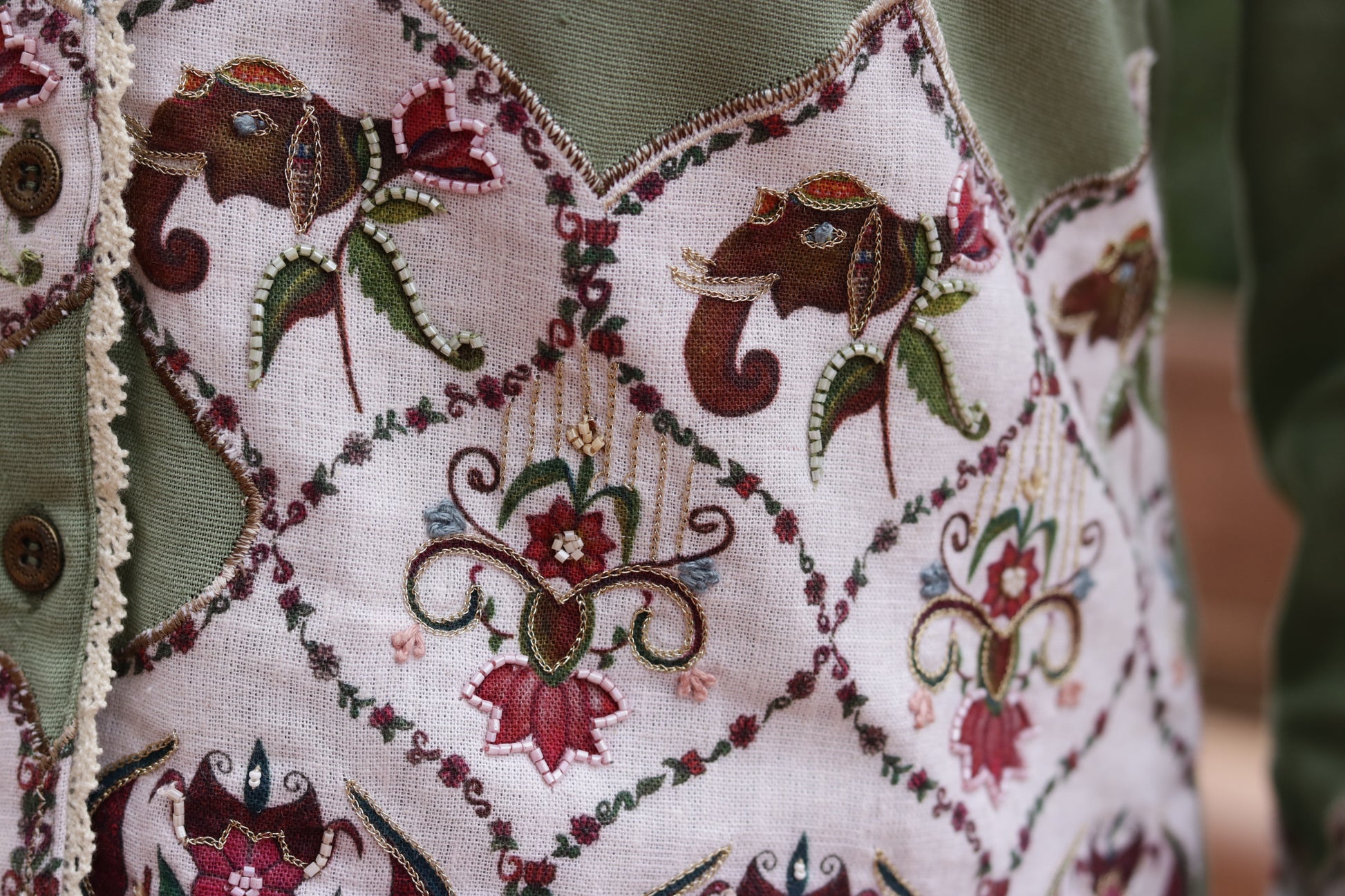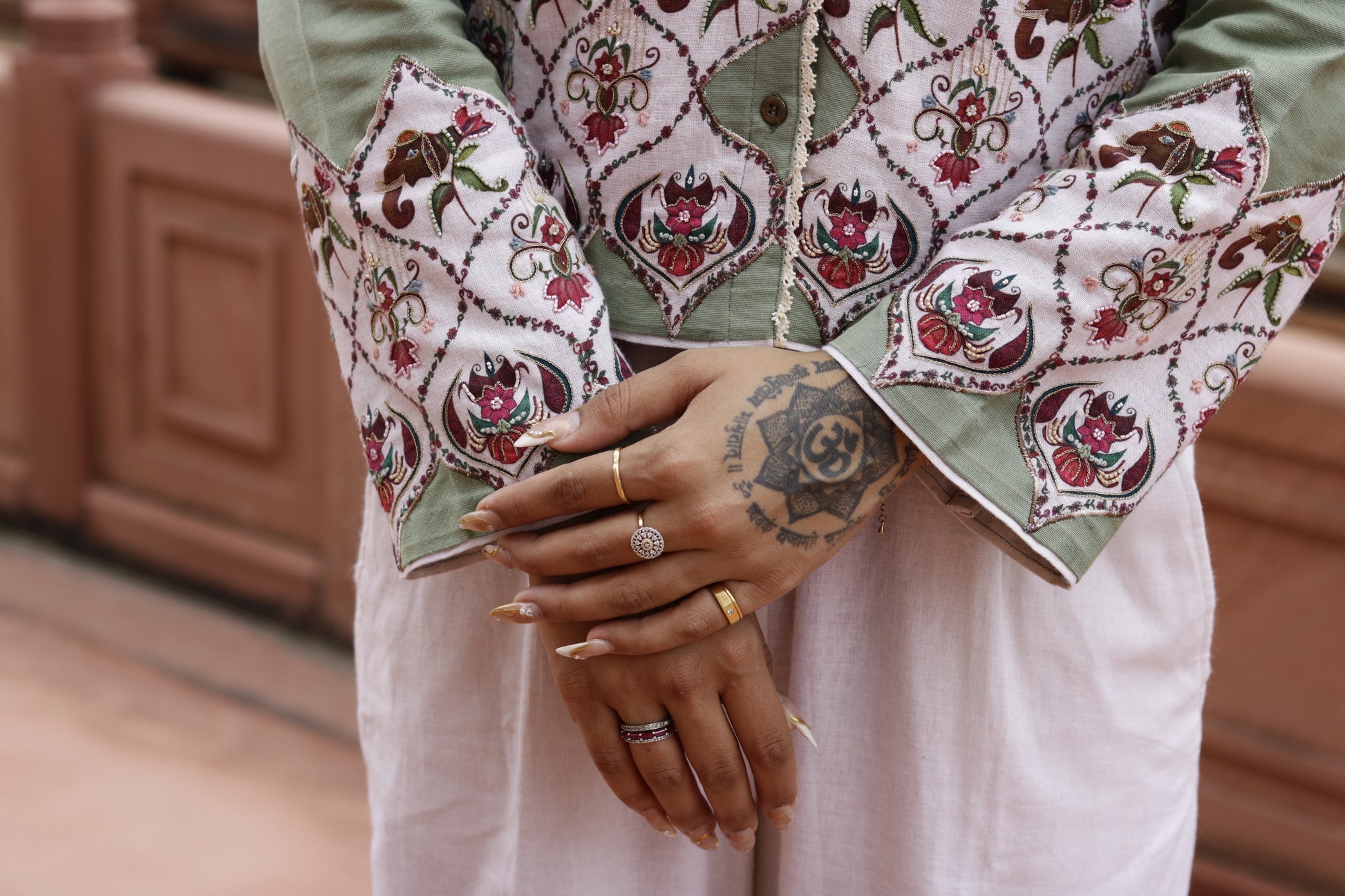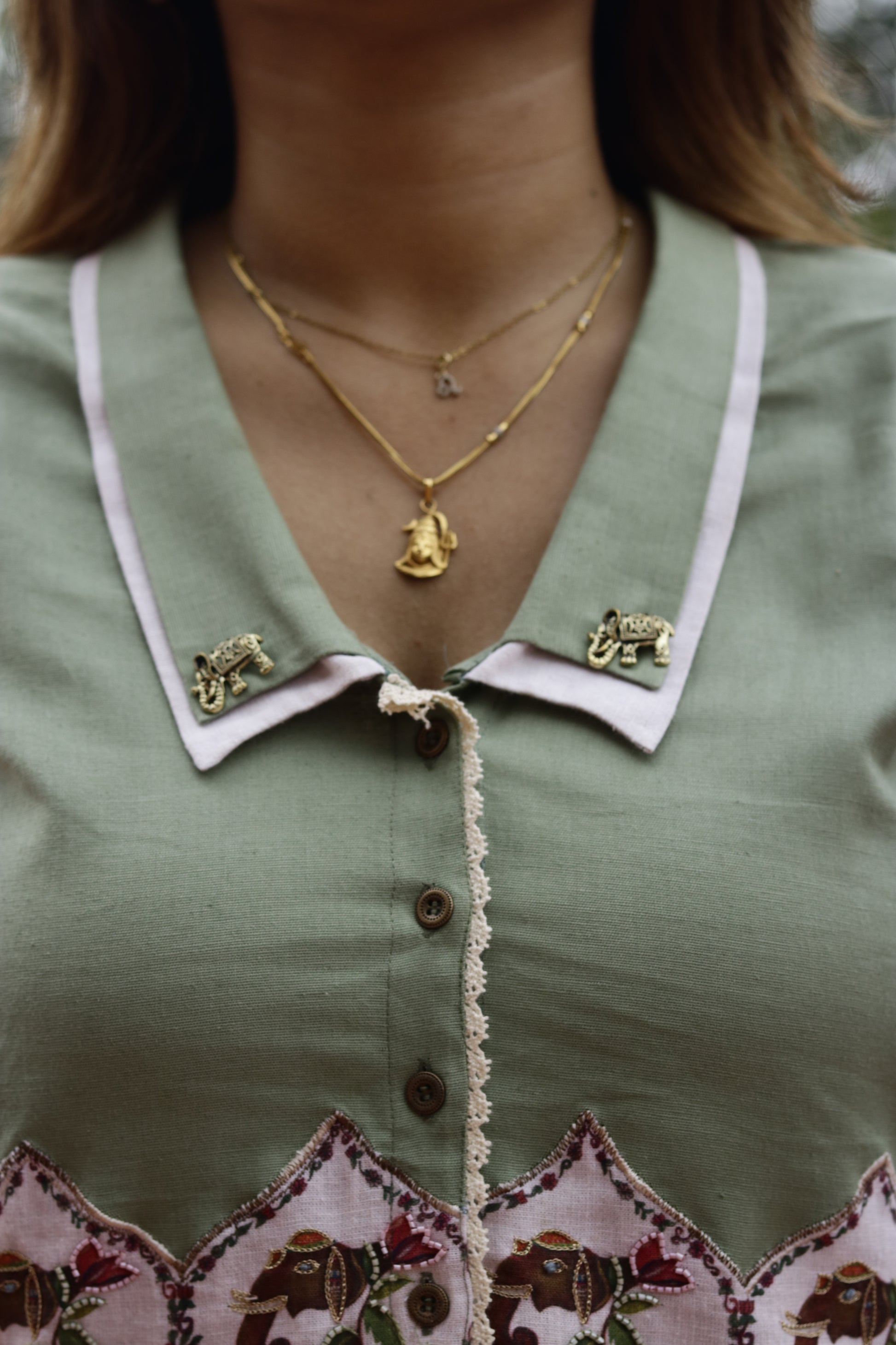our outfits are made thoughtfully where we are using no plastic meaning no polyester , no plastic button and not even synthetic labels and tags also we have used breathable fabric to suit your skin and makes it more comfortable to wear. and in each stitch u can see the representation of our rich Indian tradition, culture and art. each piece of silhouettes of stone is inspired from Amer fort. the motifs are derived from the frescos and wall painting.