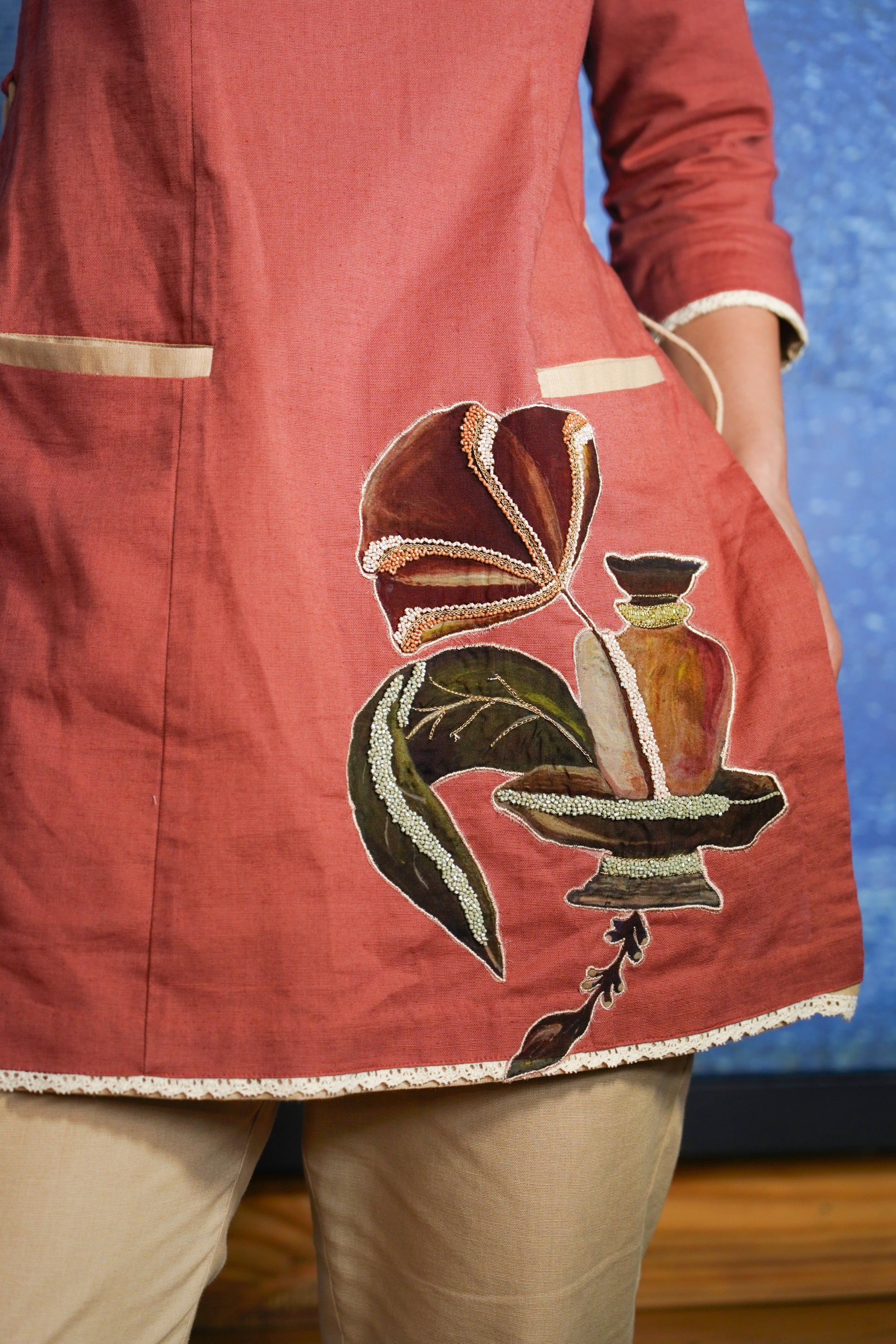 its a perfect and unique outfit for every day office wear. with hand embroidery and elegance of hand paint boota. all the fabrics that we have used are natural fabrics. the qualities that our fabric carry are ...Comfortable and breathable,Flexible and soft,Durable, Easy to care for, Versatile, Easy to work with, Stylish appearance. and it is called at cotton flex.