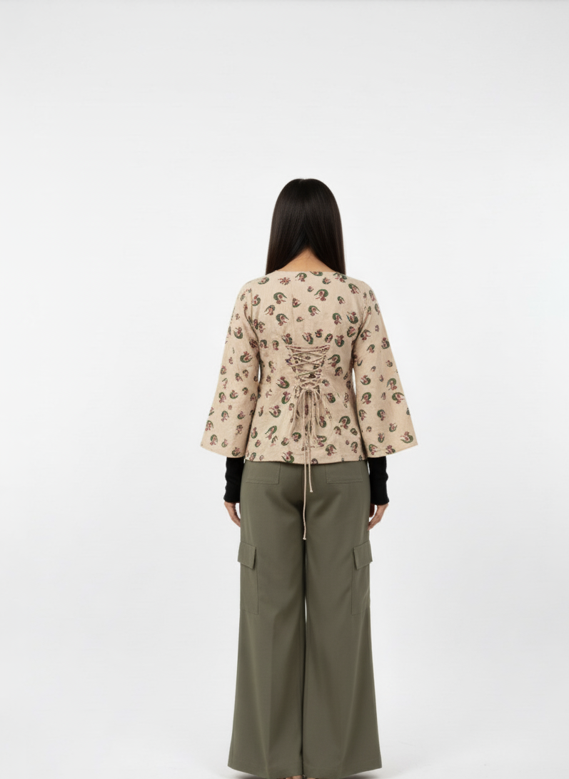 Our ethical fashion ensemble is perfect for conscious shoppers looking for stylish alternatives to fast fashion. Enjoy premium comfort with toxin-free materials and artisanal detailing, designed for versatility from casual outings to festive events. The olive green pants feature utility pockets for convenient functionality, supporting an active lifestyle while staying chic.
